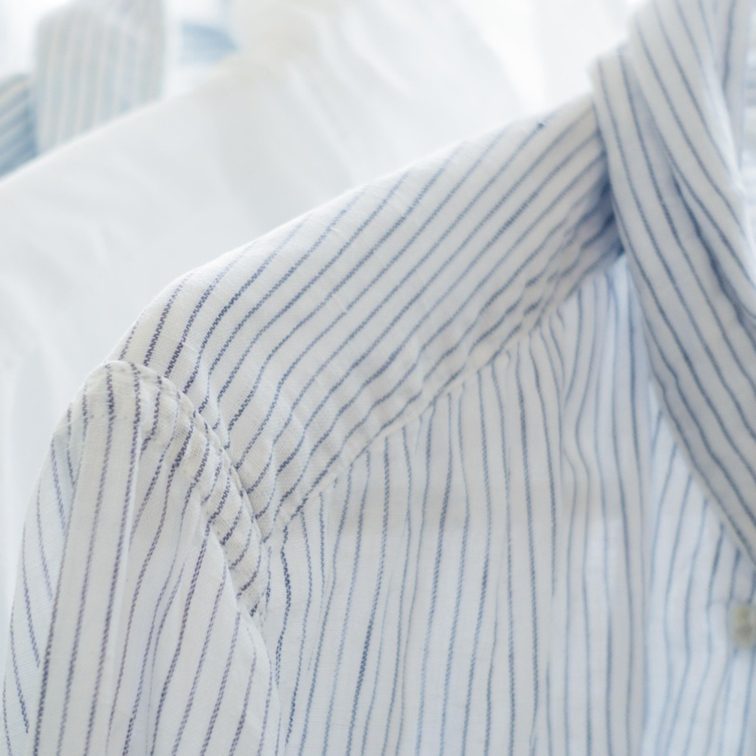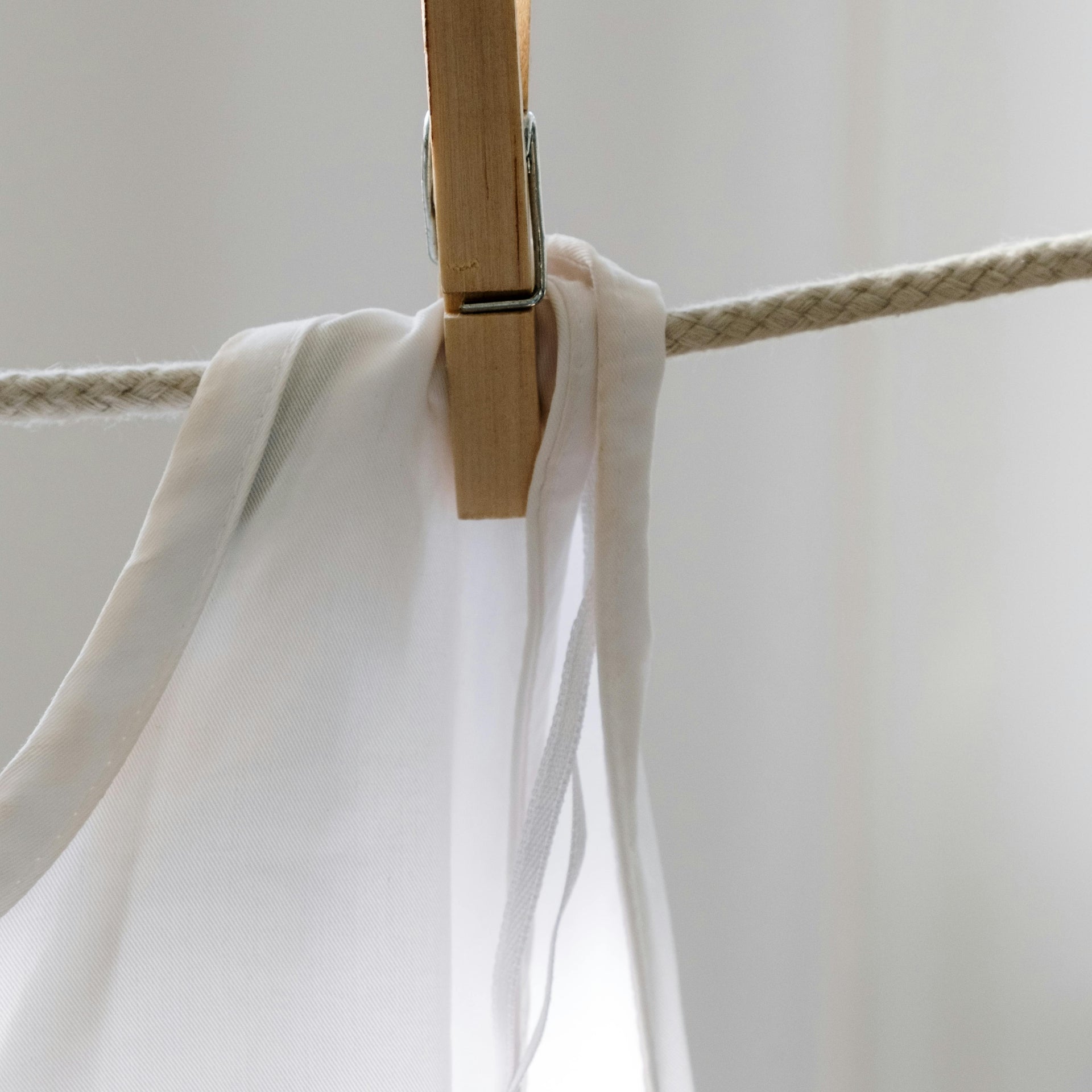 Lufttrocknung: Hänge Leinenkleidung an der Luft auf, idealerweise im Schatten, um Ausbleichen zu verhindern.