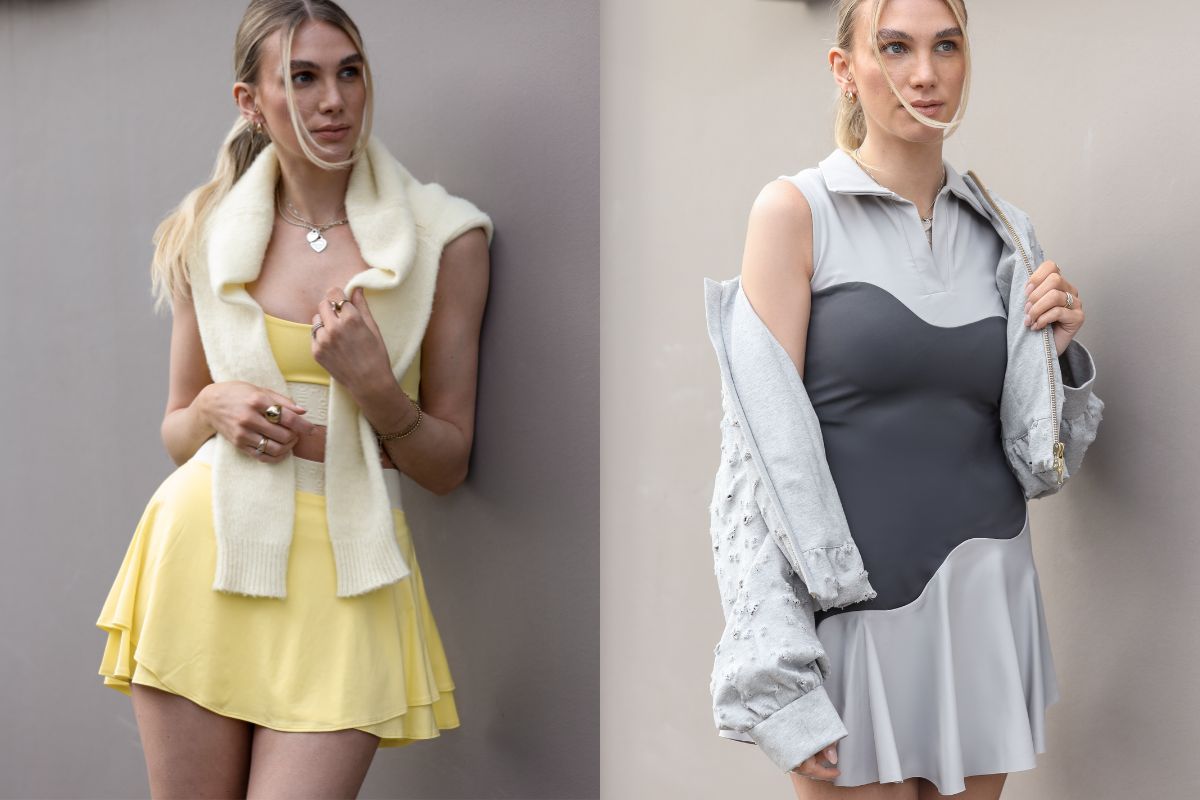 Die Designs spielen mit femininer Raffinesse und Funktionalität – von Leggings über Jumpsuits und bodenlange Kleider bis zu Tops und Badebekleidung. Sie verkörpern Ballettästhetik durch elegante Schnitte, geometrische Muster und kräftige Farben, die sich sowohl im Studio als auch im Alltag sehen lassen können.
