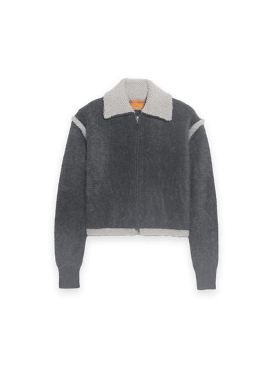 Weich, modern, luxuriös: Die Grizzly Frankie aus gebürstetem Kaschmir überzeugt mit breitem Kragen, feinen Strickdetails und verkürzter Silhouette. Ein Statement-Piece mit cozy Attitüde – lässig, aber immer elegant.