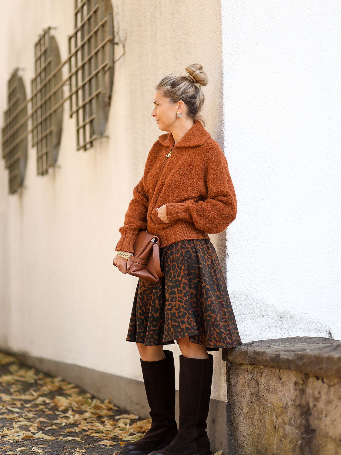 This short silk pleated skirt adds a fashionable touch to any outfit with its leopard print and sweeping A-line. The elasticated waistband and fine pleats ensure a comfortable fit and an elegant, flowing silhouette.