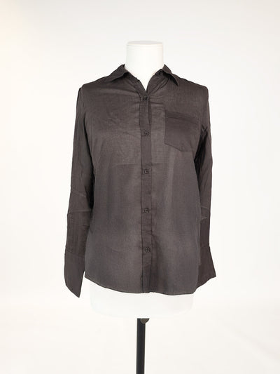 Cette blouse en coton présente un col chemise étroit, une patte de boutonnage sur toute la longueur, une poche poitrine et des manches longues avec poignets.