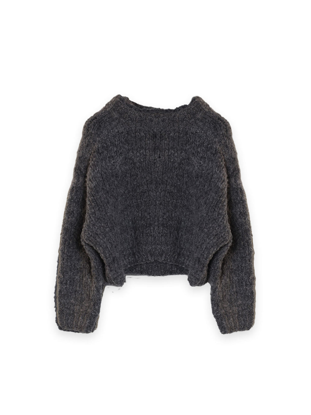 Der Cropped Pullover aus Woll-Alpaka-Mischung besticht durch seinen modernen Grobstrick-Look und die verkürzte Silhouette.