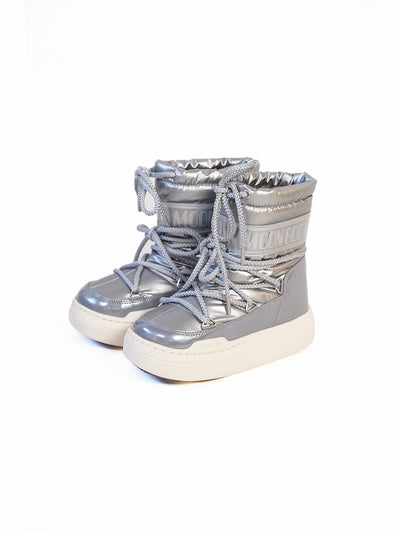 Les MB JR Park Boots sont des Moon Boots hautes avec des lacets voyants et un cordon de serrage sur le devant. La semelle haute assure un port confortable. Le modèle est réversible et se fait remarquer par son look particulier.