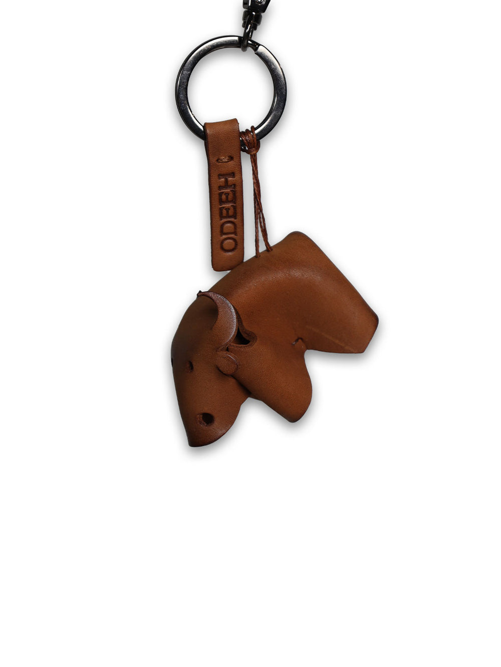 Ein Schlüsselanhänger aus Leder in Stier-Form, der Stärke und Eleganz vereint. Der silberfarbene Verschluss macht ihn zu einem edlen Begleiter im Alltag.