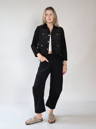 Le pantalon à l'aspect velours côtelé combine une coupe décontractée et un look stylé. Fabriqué dans un mélange de coton confortable, il possède de grandes poches avant, une fermeture éclair et des poches arrière pratiques.