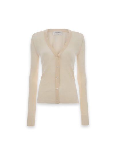 Die semitransparente Strickjacke von Victoria Beckham überzeugt mit einer klaren, modernen Linienführung und einer zarten Optik. Die schmale Silhouette und die dezenten Knöpfe unterstreichen den cleanen Charakter des Designs. Durch ihren angenehmen Stretch-Anteil lässt sich die Strickjacke wunderbar layern – sei es über einem zarten Cami oder solo für einen subtilen, eleganten Look.