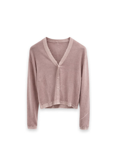 Leichter, dünner Cardigan aus einem Cashmere-Seiden-Mix mit femininem V-Ausschnitt und durchgehender Knopfleiste. Das feine Material fällt weich und verleiht jedem Look eine elegante, zeitlose Note.