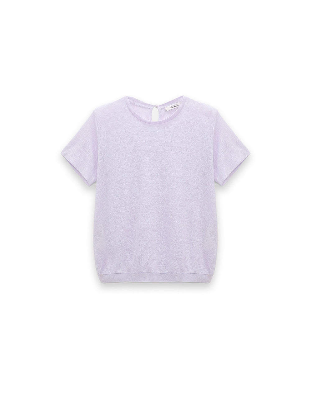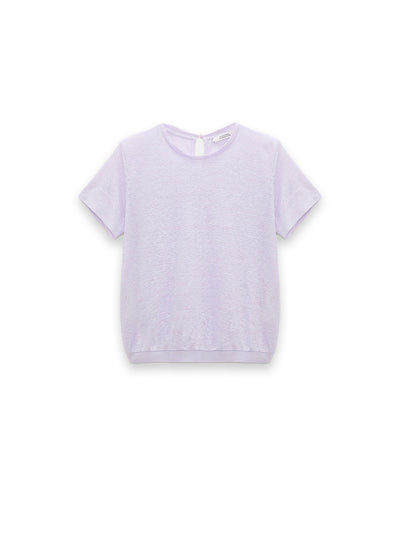 Das Oberteil im T-Shirt-Stil ist aus Hanf gefertigt und hat ein meliertes Finish. Das Piece hat einen farblich abgestimmten Strickbesatz aus Rayon.