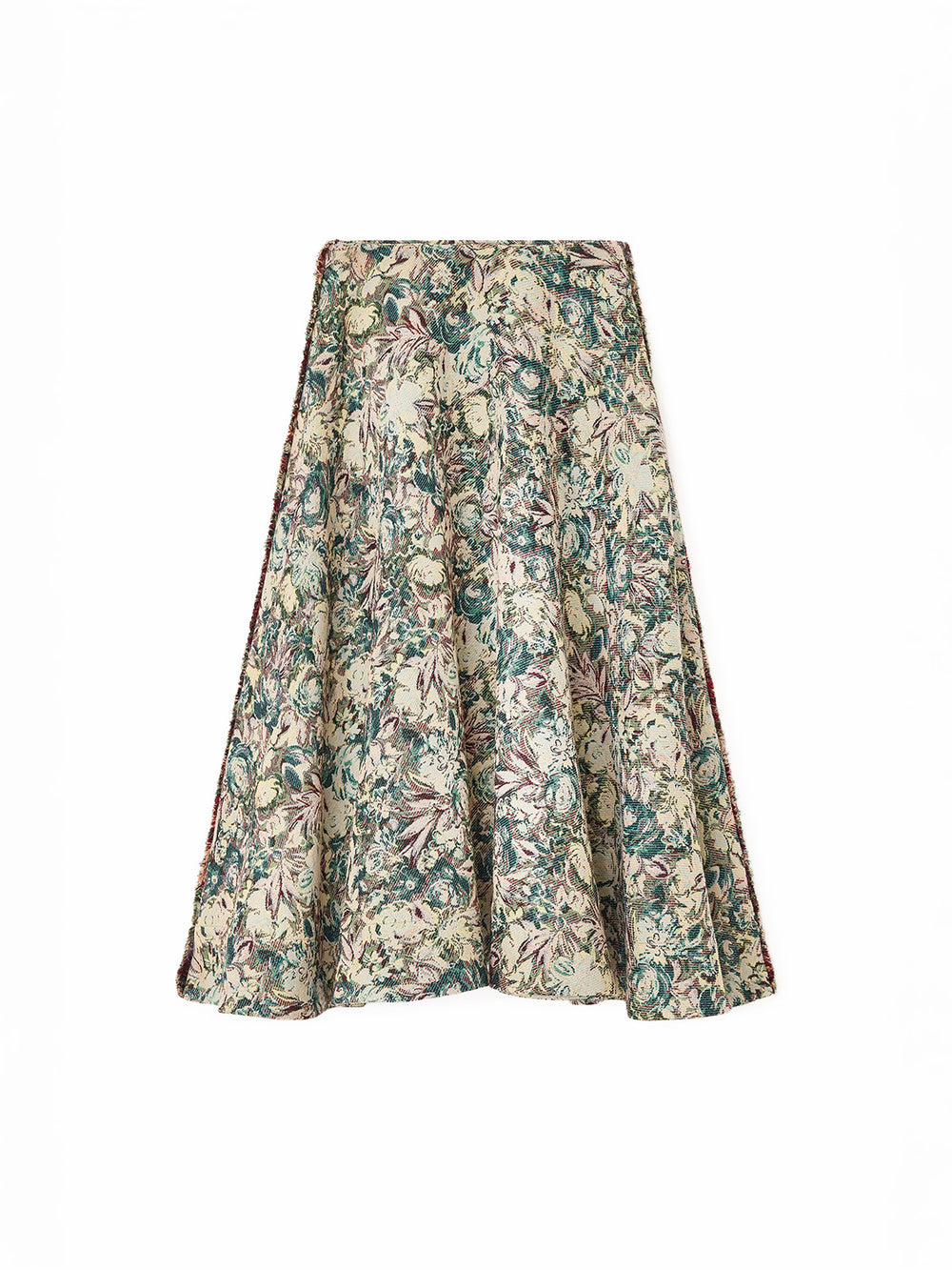 Dieser lange Tellerrock mit Blumendruck hat einen femininen A-Linien Fit und ist mit einem Reißverschluss ausgestattet. Ausgefranste Saumdetails entlang der Seitennähte runden das Design ab.