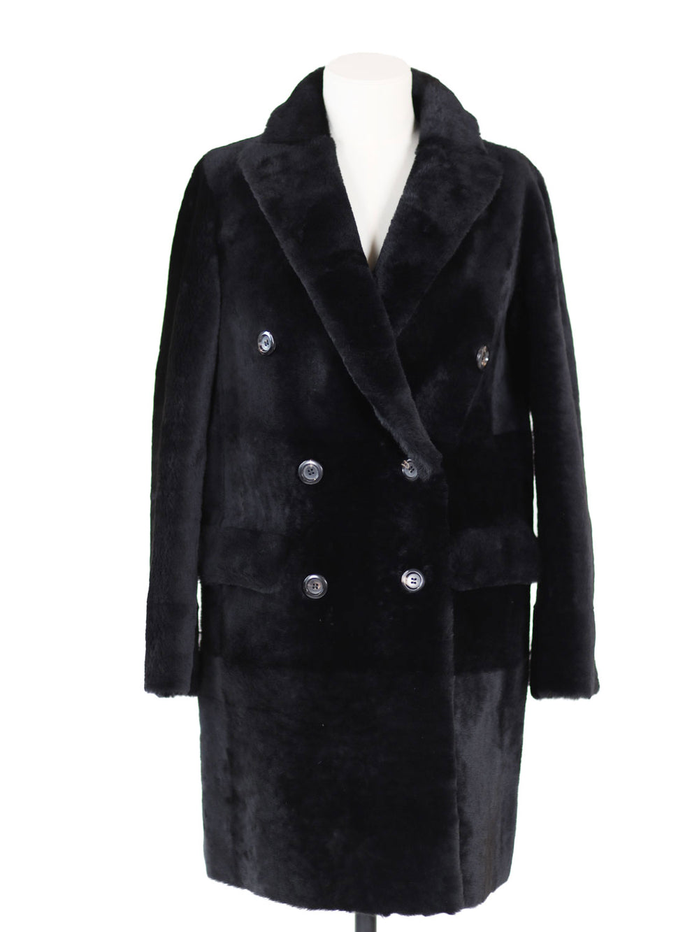 Der Mantel aus 100 % hochwertigem Schafsfell kombiniert luxuriöse Materialien mit einem wandelbaren Design. Dank Wendefunktion lässt er sich vielseitig stylen, während Reverskragen, doppelreihige Knopfleiste und aufgesetzte Pattentaschen dem entspannten Loose Fit eine klassische, elegante Note verleihen.