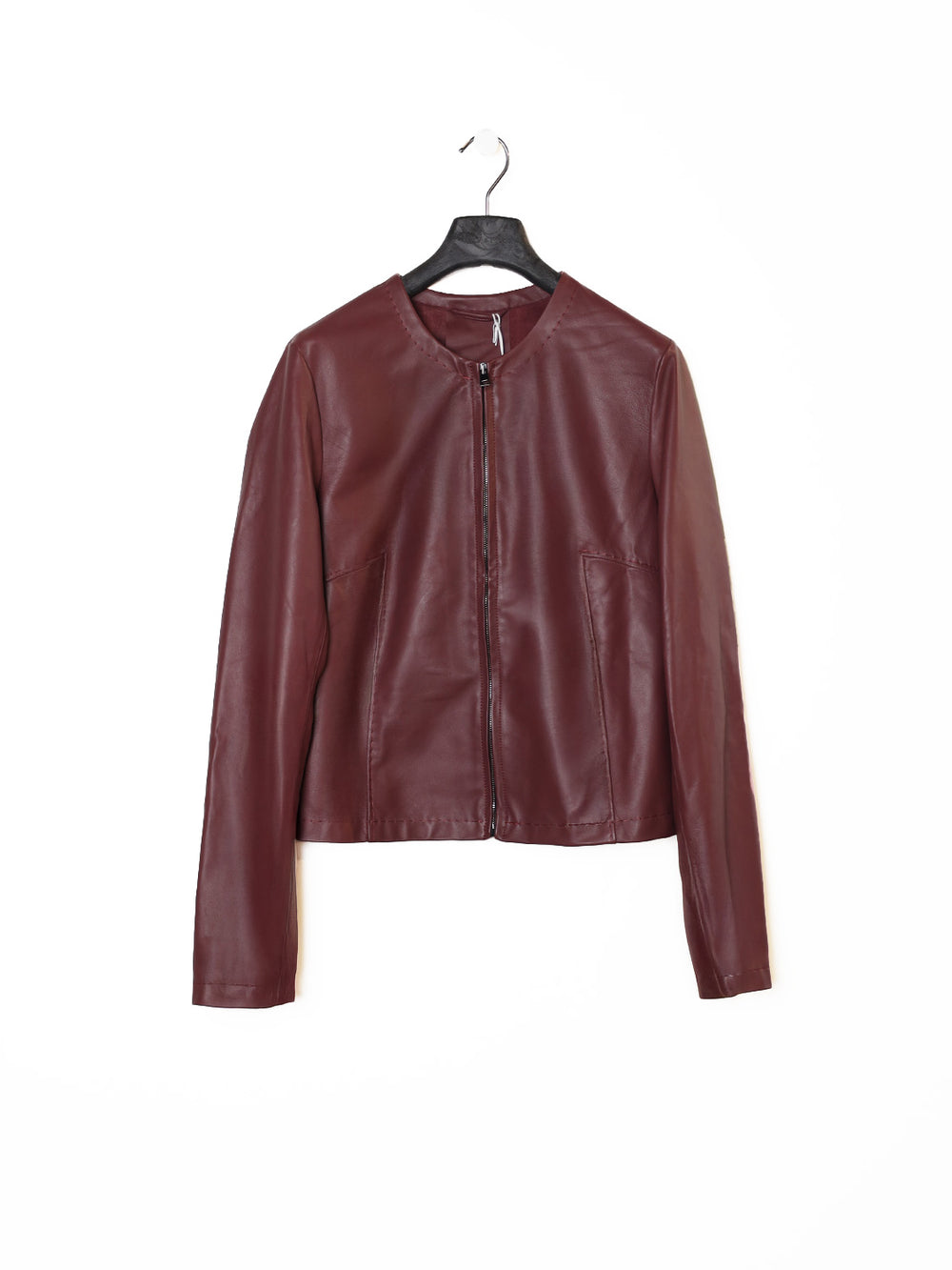 Die Lederjacke überzeugt mit einem schmalen Schnitt und feinen Verziernähten. Sie ist aus 100% Lammleder gefertigt, hat einen Rundhalsausschnitt und einen praktischen Reißverschluss.