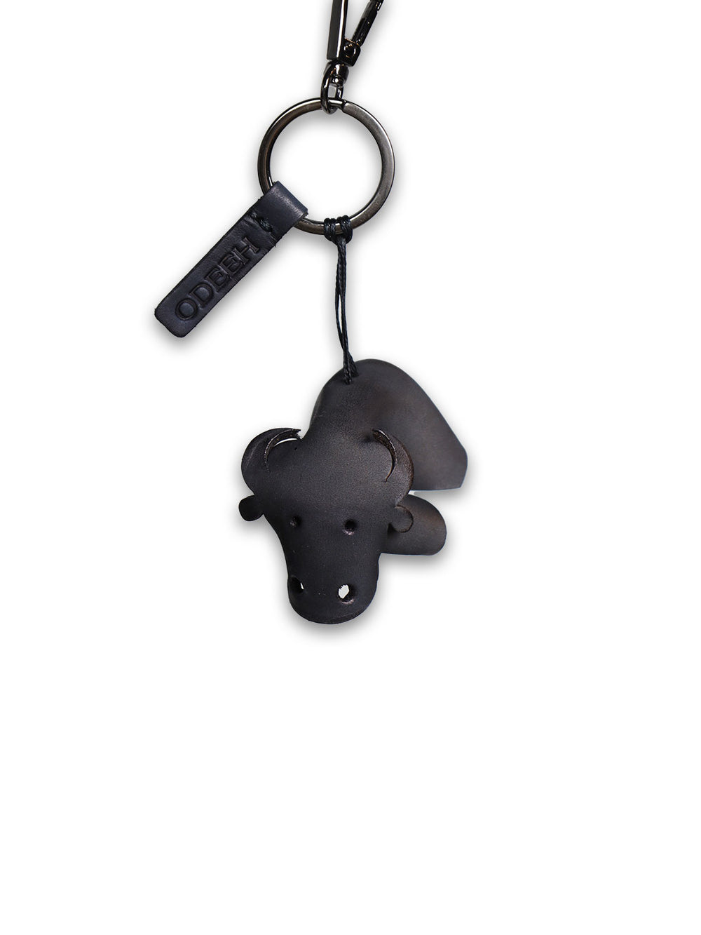 Ein Schlüsselanhänger aus Leder in Stier-Form, der Stärke und Eleganz vereint. Der silberfarbene Verschluss macht ihn zu einem edlen Begleiter im Alltag.